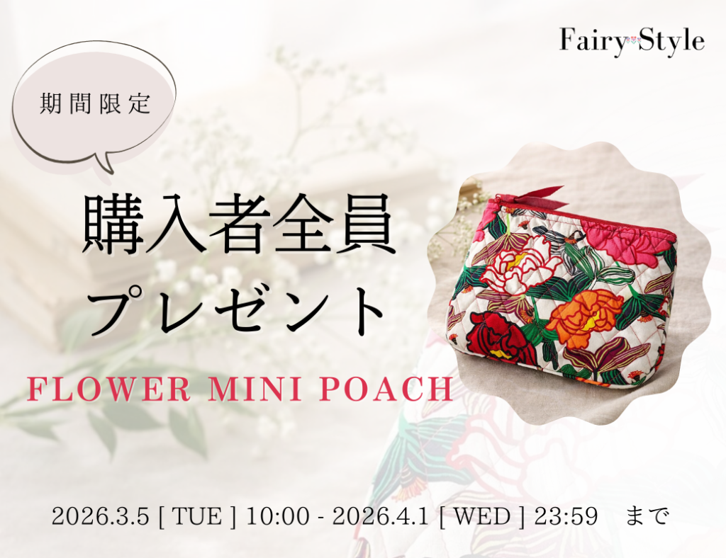 3/5 10:00~よりご購入者の皆様へ、春のお出掛けにぴったりなミニポーチをプレゼントさせていただきます。